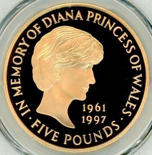 イギリス5ポンド金貨 ダイアナ妃追悼 1999年 PR69DCAM/プルーフディープカメオ 送料込