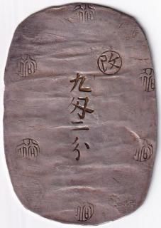 秋田九匁二分銀判 加工跡 美品− 送料込