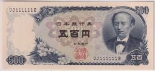 1桁 岩倉新500円札 日本銀行券C号500円 未使用