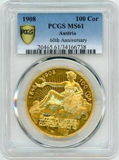 雲上の女神 オーストリア100コロナ金貨 1908年 MS61/未使用− 送料込