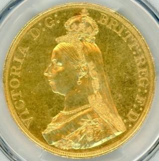 イギリス5ポンド金貨 ヴィクトリア・ジュビリー 1887年 MS63/未使用 送料込