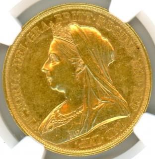 イギリス5ポンド金貨 ヴィクトリアオールド 1893年 AU55/極美品 送料込