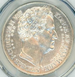 デンマーク スペーシーダラー銀貨 クリスチャン8世とフレデリック7世 1848年FK/VS AU58/極美品+ 送料込