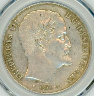 デンマーク2リグスダラー銀貨 フレデリック7世 1854年FK/VS AU55/極美品 送料込