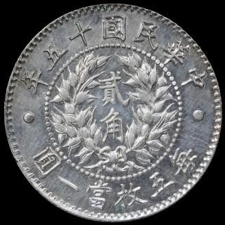 中国2角銀貨(20セント) 龍鳳 1926年(中華民国十五年) AU-D/極美品+ 送料込