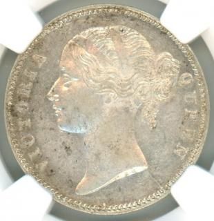英領インド ルピー銀貨 小型 ヴィクトリア女王 1840年 MS62/未使用− 送料込