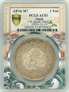 明治7年 新1円銀貨 後期・浅彫 AU53/極美品 送料込