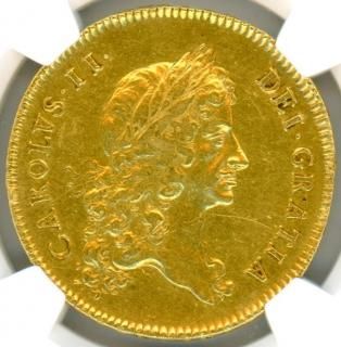 イギリス5ギニー金貨 チャールズ2世 1672年 AU-D/極美品− 送料込