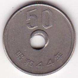 穴ズレエラー50円白銅貨 昭和44年 美品 送料込