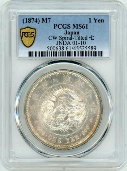 左丸銀 明治14年 新1円銀貨 MS63/未使用 鑑定書付 送料込