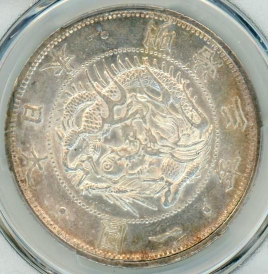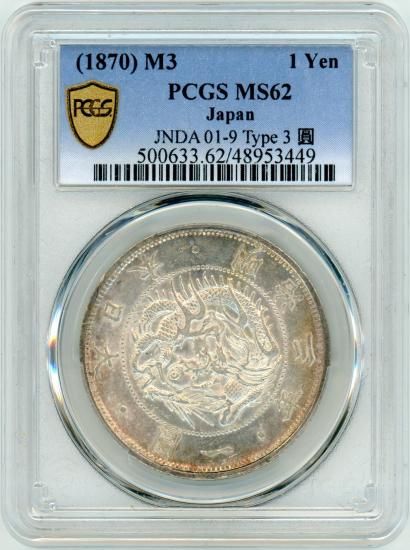 明治3年 旧1円銀貨 有輪 極美品− 鑑定書付 送料込