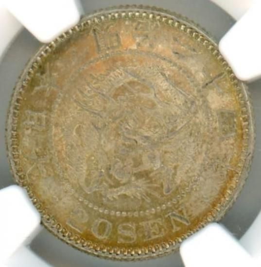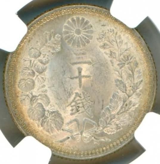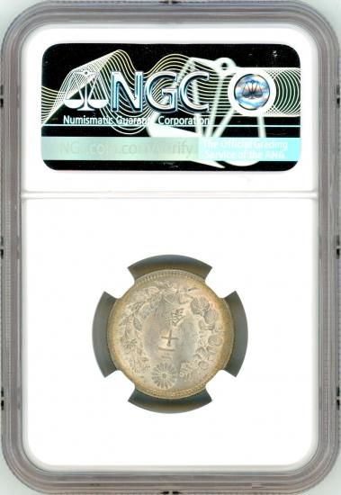 明治10年 竜50銭銀貨 上切リボン 美品 鑑定書付 送料込