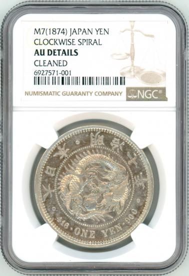 左丸銀 明治14年 新1円銀貨 MS63/未使用 鑑定書付 送料込