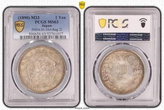 明治10年 竜50銭銀貨 上切リボン 美品 鑑定書付 送料込