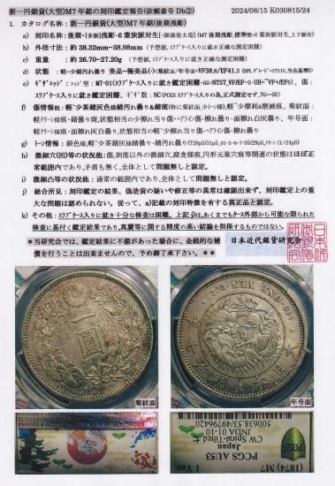 左丸銀 明治14年 新1円銀貨 MS63/未使用 鑑定書付 送料込