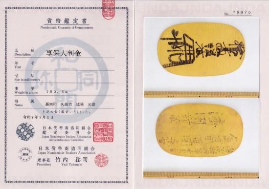 元文小判金 筋・神(佐渡鋳) 美品+ 鑑定書付 送料込