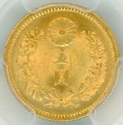 明治3年 旧5円金貨 有輪 MS65/未使用+ 送料込