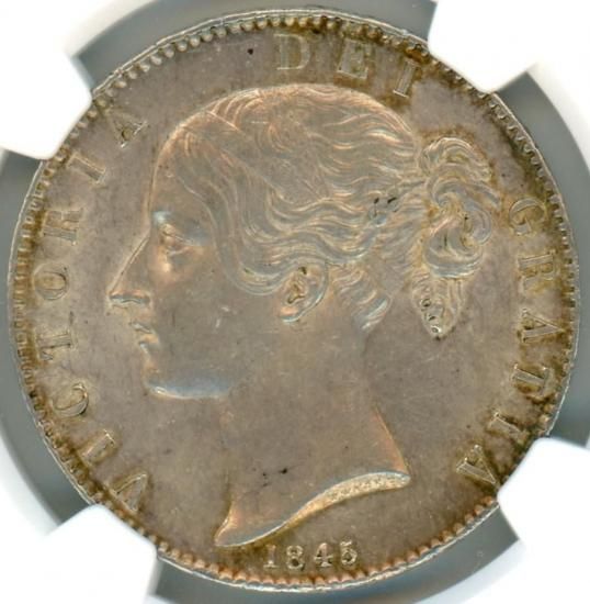 イギリスクラウン銀貨 ヴィクトリア・ヤング 1845年 MS61/未使用− 送料込