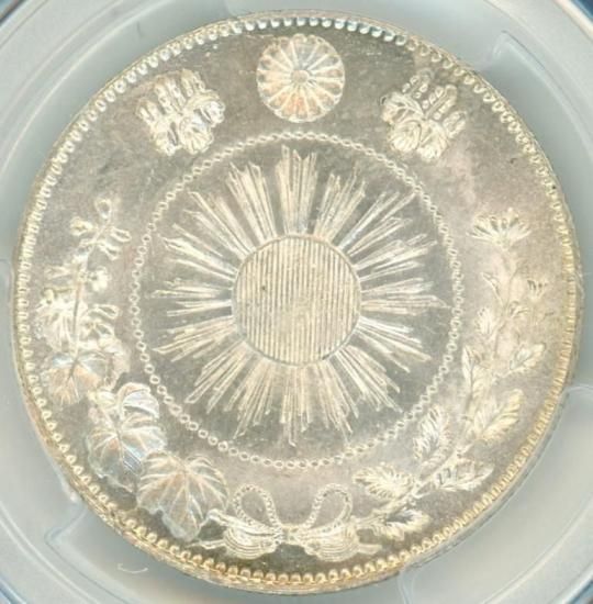 左丸銀 明治14年 新1円銀貨 MS63/未使用 鑑定書付 送料込