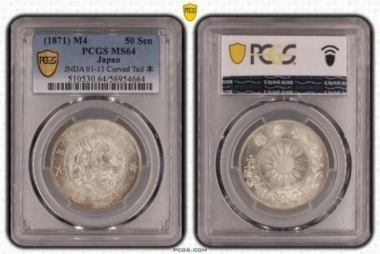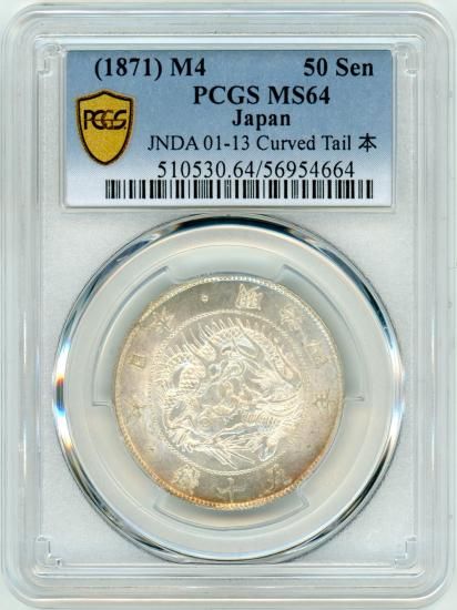 前期ハネ本 明治4年 旭日竜50銭銀貨 MS64/未使用+ 送料込