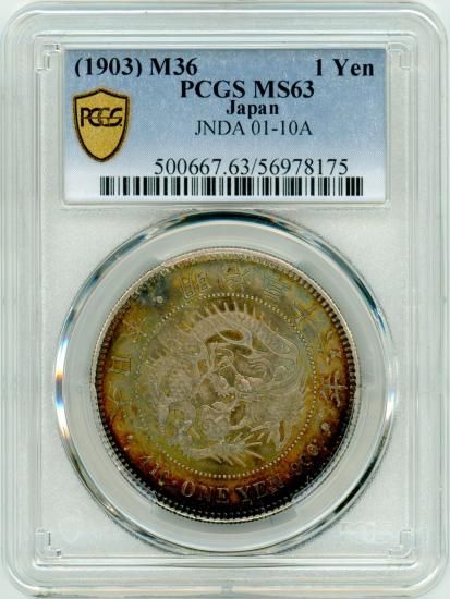 明治36年 新1円銀貨 ナイストーン MS63/未使用 送料込