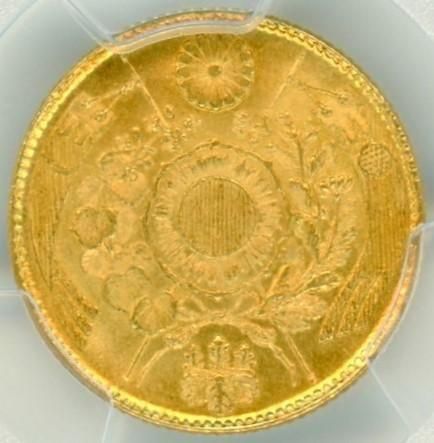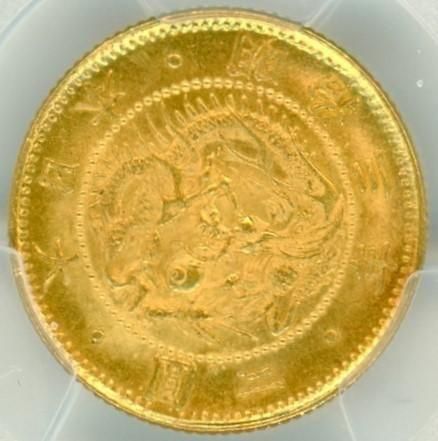 明治3年 旧5円金貨 有輪 MS65/未使用+ 送料込