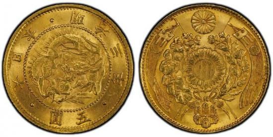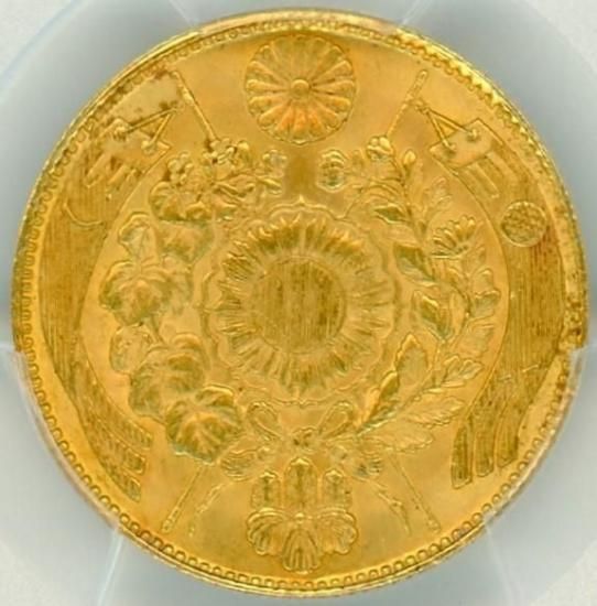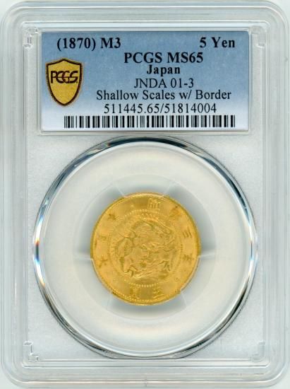 明治3年 旧5円金貨 有輪 MS65/未使用+ 送料込