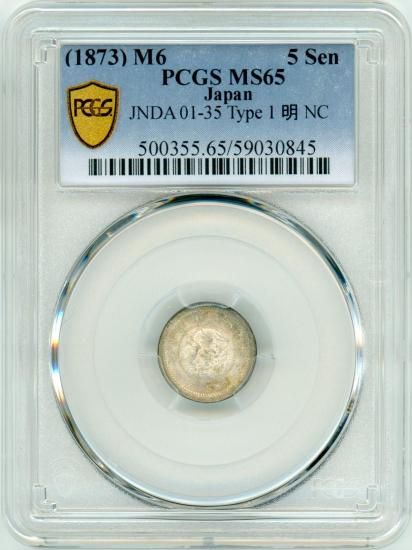 明治6年 竜5銭銀貨 MS65/未使用+ 送料込