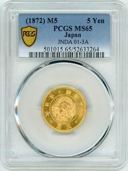 明治7年 旧5円金貨 未使用 鑑定書付 送料込