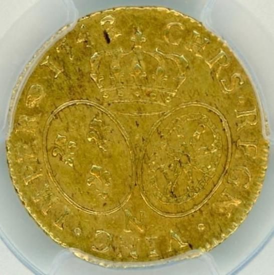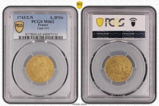 フランスルイドール金貨 ルイ15世 1743/2年N MS62/極美品+ 送料込