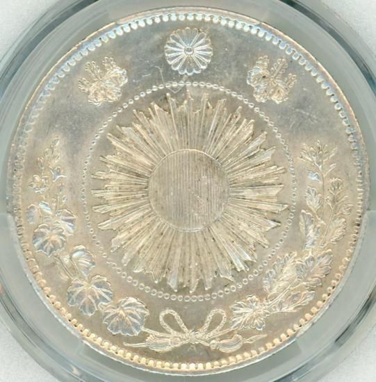 明治11年 新1円銀貨 浅彫 極美品 鑑定書付 送料込