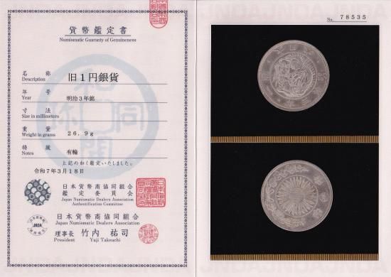 明治12年 新1円銀貨 極美品 鑑定書付 送料込